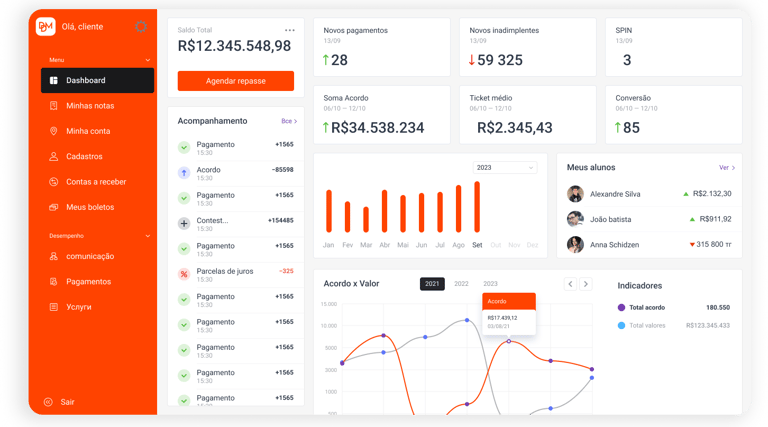O Grupo DDM elimina todos os atritos relacionados a pagamentos, com dashboards interativos em tempo real, você tem na palma da mão sua operação e resultado sobre pagamentos dos seus alunos, além de controlar ações.